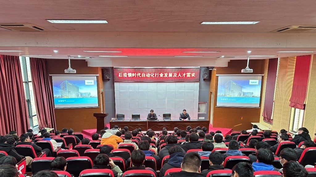 为帮助在校学生了解自动化行业发展与人才需求知识,树立学好专业知识技能的信心,20231228日下午,机电工程学院邀请无锡信捷电气股份有限公司公共及教育事业部部长王正堂工程师来校,为学院约200名学生举办了“后疫情时代自动化行业发展及人才需求”的学术讲座。讲座由机电工程学院院长夏春荣主持。