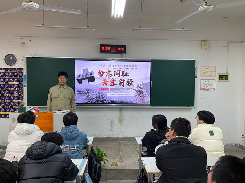 在这个寒冷的冬日,机电工程学院221341班的同学们聚集一堂,共同参与了一场意义深远的国家公祭日纪念活动。本次活动由机电2022级团支部书记李信余主讲,主题为“勿忘国耻,吾辈自强”,旨在通过缅怀历史,激发同学们的爱国情怀和自强不息的精神。