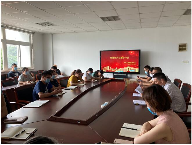 为落实立德树人根本任务,加强学院师德师风建设,弘扬新时代教师道德风尚,提升广大教师自我修养、潜心教书育人的责任意识。2020年7月3日下午,汽车工程学院召开中心组学习扩大会,组织师德师风专题学习,学院全体教师参加。会议由学院党总支书记周晓伟主持。