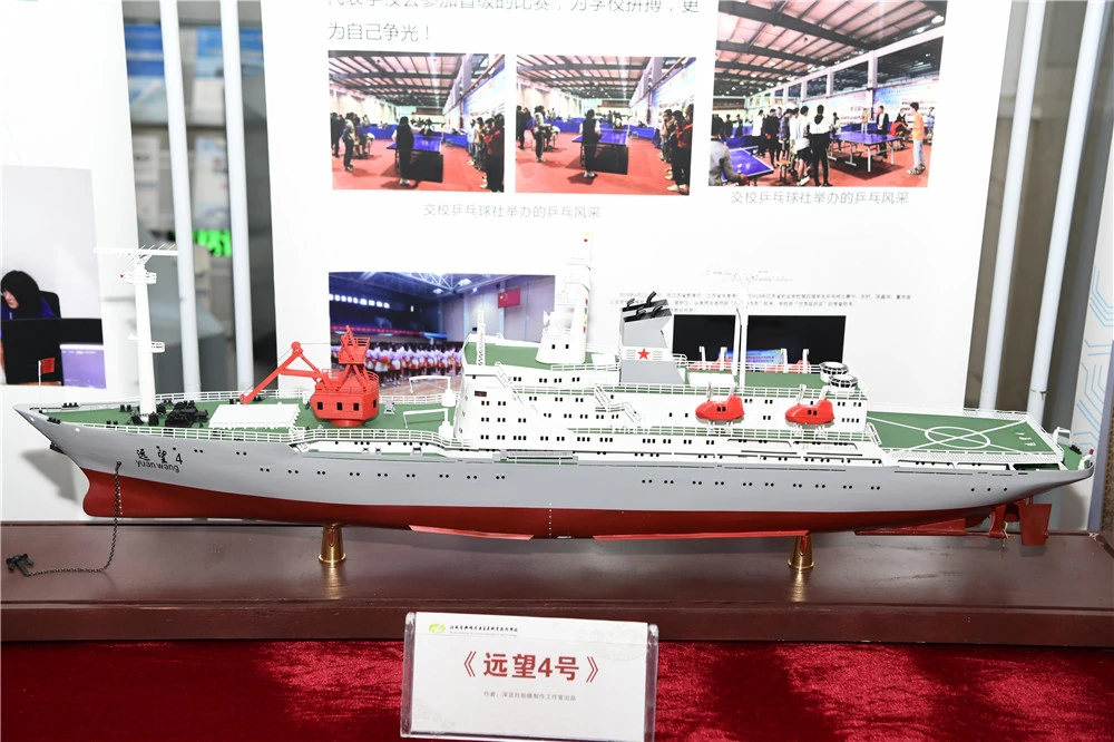 此次手工作品展种类繁多,美轮美奂。每个展区里,展台上一份份精致小巧,精雕细琢的作品皆赢得广大师生的驻足观赏、评鉴。有出自首届校园手工制作大赛的优秀作品《羊毛毡》、《苏州园林》、《江南小屋》、《盒子剧场》,也有学生社团刻纸社的《连年有鱼》、《金狗纳?!?,拙巧手工坊的《九霄云鹤头饰》、《玫瑰刺绣》,绿苑文学社的《蓝晒作品》、《扎染作品》,船模社的《青岛舰》、《远望4号》等近百幅作品。每件作品都独具匠心、构思巧妙,参观的师生对各式各样的造型和惟妙惟肖的作品无不啧啧称赞。