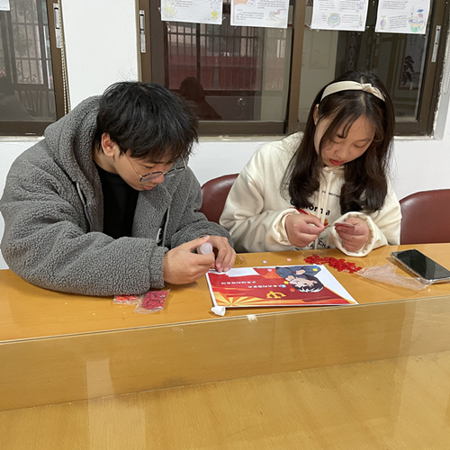 为庆祝党建立100周年,提升学生对党的认识,3月17日中午,演讲与朗诵协会组织开展“青春献礼百年庆,我心向党葆初心”之手工活动。此次活动在大学生活动中心111展开,两位指导老师和十余位学生参加。