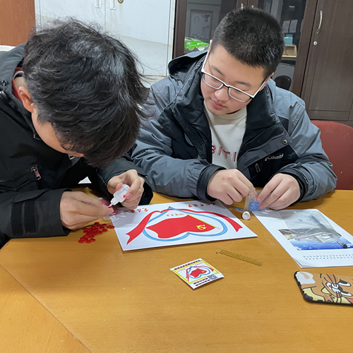 活动开始之初,学生以小组为单位,选取手工材料,通过合作互助,完成手工。与此同时,指导老师对其进行党徽介绍以及党史宣讲,使同学们在手工制作的同时,增加对党的认识。