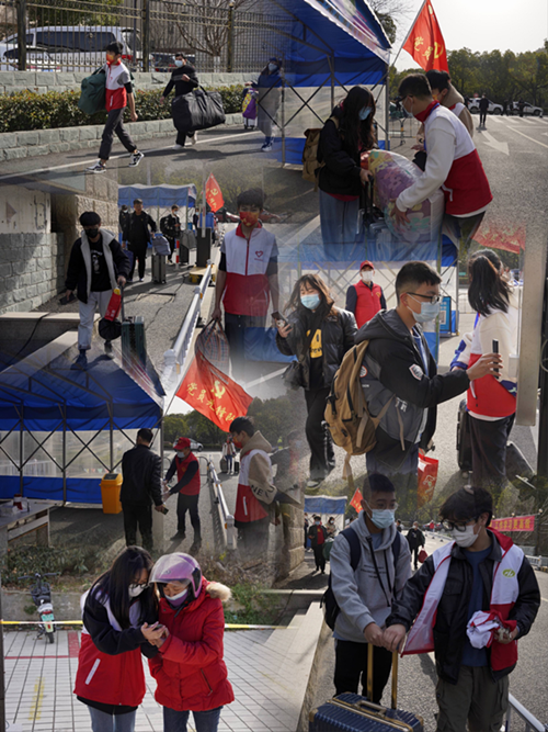 3月5日,恰逢全校学生在疫情稳定后返校,我们的青年志愿者穿梭于校园各处,向每一位需要帮助的同学和家长伸出援助之手?!扒胛誓阈枰锩β??”“行李太重了,我帮你吧”,朴素的话语,简单的红色志愿服,却是疫去春来的校园内一道亮丽的风景线。