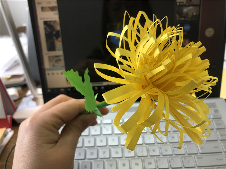4月5日,数美设计社组织开展“线上祭英烈”活动,并组织学生折手工菊花来表达对英雄们的敬意。
