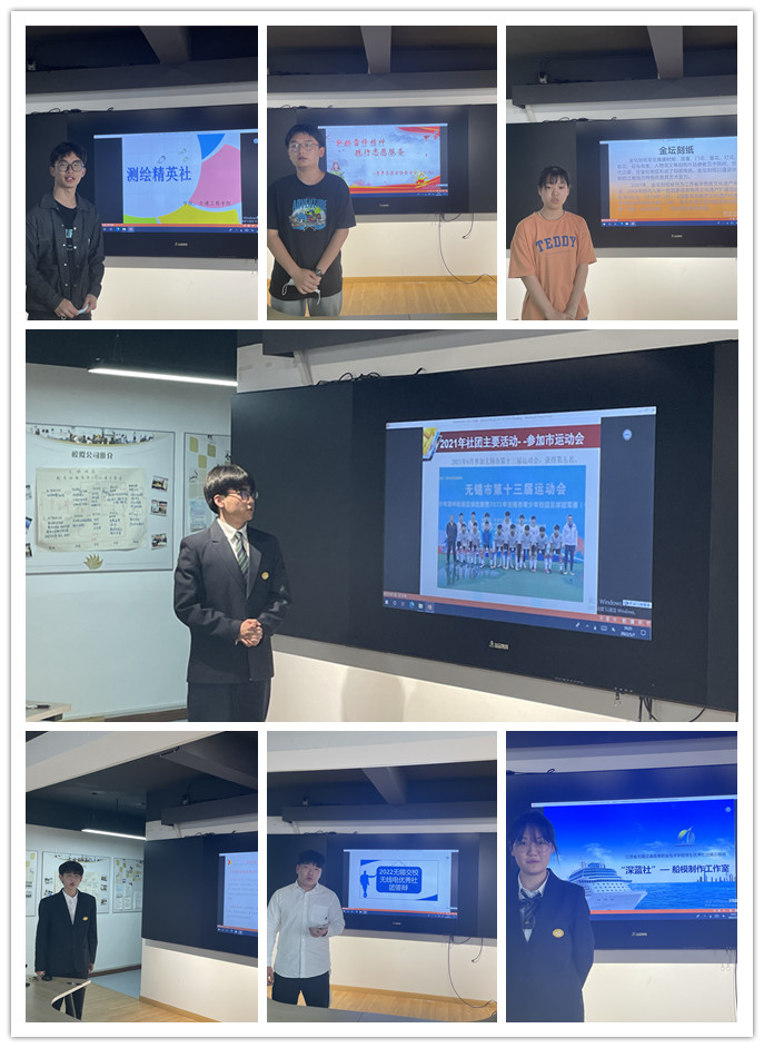 青年马克思主义研习社聚焦思想成长,汇报青年学生学习习近平新时代中国特色社会主义思想的具体方法和体会,坚持推进理论宣讲进班级、进社团,做好青年成长成才的领航员;轮机技能研训协会、无线电测向社、工程造价协会等社团展示了该社团参加技能竞赛、创新创业大赛等活动风采,发挥学术科技类社团在推动大学生创新创业的作用;青年志愿者协会分会(白鸽)、(启航)等社团通过展示参与校内外志愿服务活动的身影,诠释出学校青年志愿者的责任和担当;茶艺社、国学堂、数美设计社等社团展示了社团全年特色活动开展、作品展示等,彰显了兴趣爱好类社团在文化和美育方面的作用。