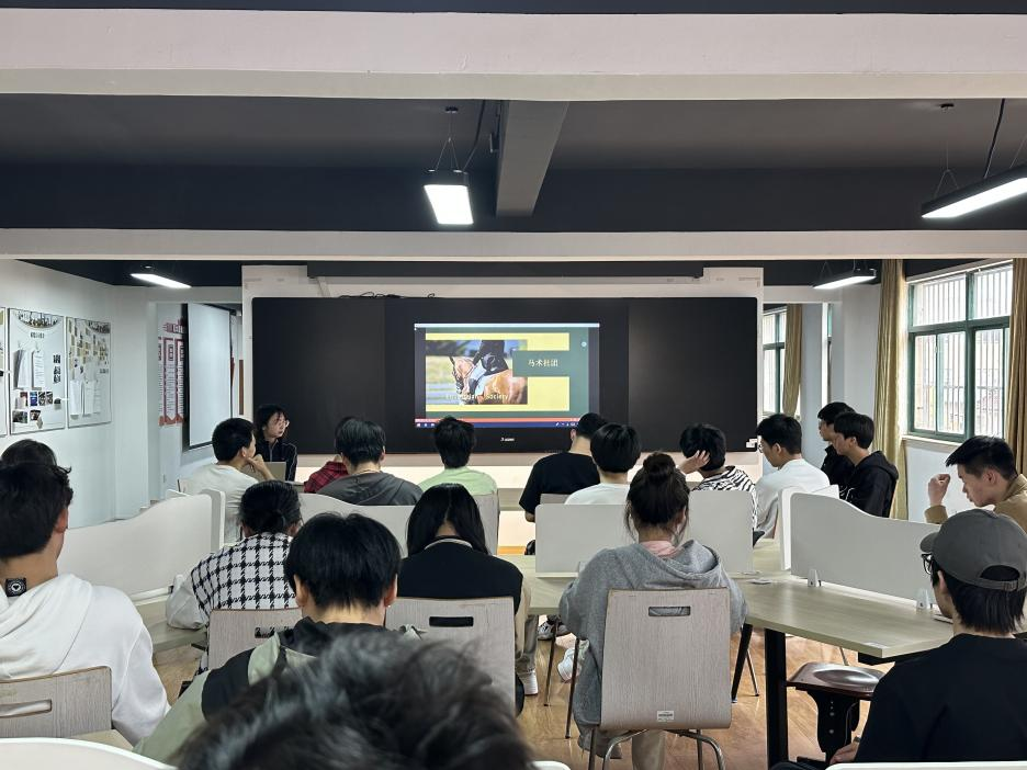 老师从马背文化、马术精神、马术比赛等方面,给同学们普及马术的基本知识。同时详细介绍了马术俱乐部的活动形式,可以通过组织学生参加马场、体验骑行、定期开展专题讲座、参与赛事裁判、马术课程学习等形式开展活动。全体参与的同学聆听了无锡骏腾马术俱乐部讲师所作的精彩讲座,观看了马术视频。