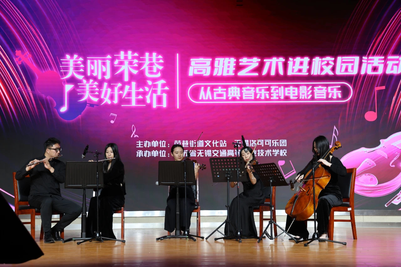 开幕式结束后,无锡洛可可乐团的演奏家们为师生们带来一场精彩的管弦乐演奏表演,精彩的演出赢得全场师生的阵阵掌声与喝彩,现场感受高雅艺术的魅力。