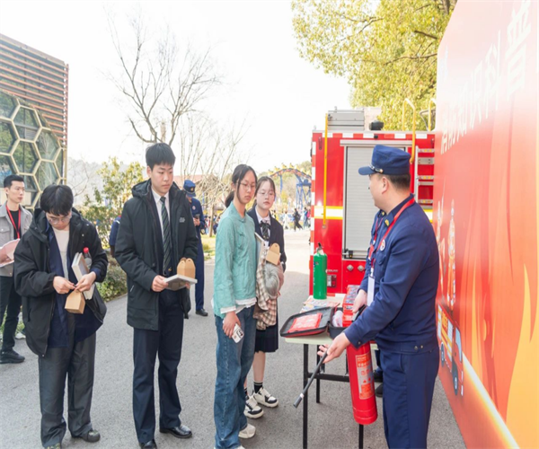 室外活动中,一场生动的问答课堂正火热开展,同学们踊跃举手竞答,赢取礼品,在轻松愉快的氛围中学习党的创新理论、全民阅读、护苗行动等相关知识。青年学生还走到消防科普区,向消防员学习了防火知识和逃生技巧。